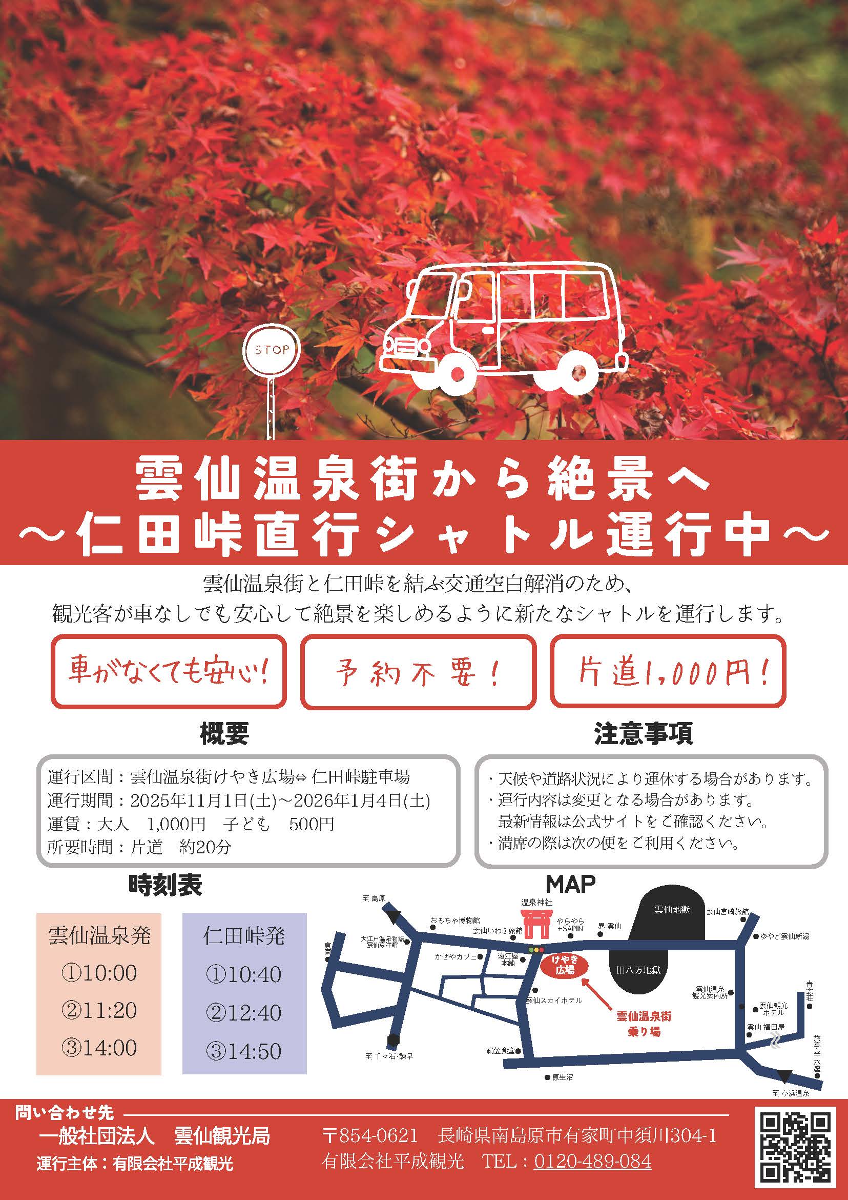 雲仙温泉街⇔仁田峠 シャトルバス運行決定