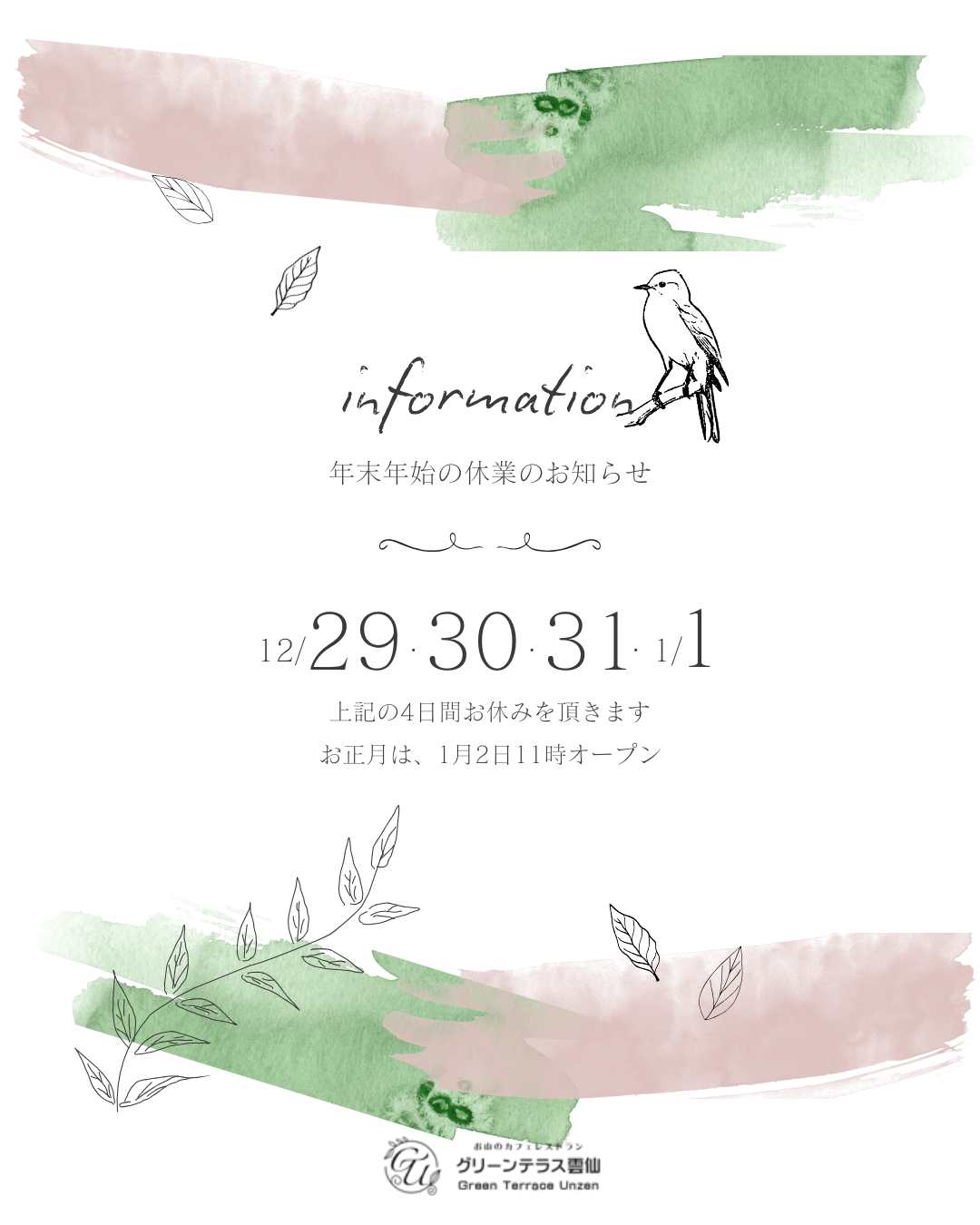 今年もグリーンテラス雲仙・マルコスカフェをご利用いただきありがとうございました。 心より感謝申し上げます。